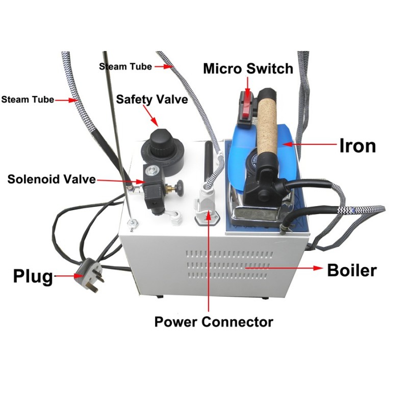 8 . ) Must tum off the switch of the kettle ( drawing 4 ) , iron power switch ( drawing 6 ) , as well as head power switch after machine working . Safety valve needs to be loosened ( drawing 1 ) to avoid pressure existed in the machine .