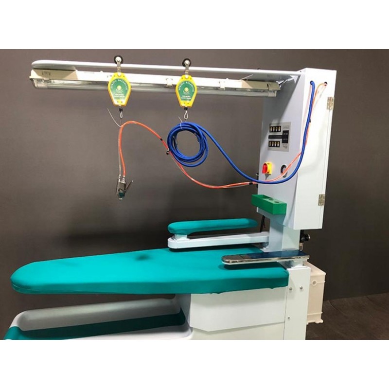 7. When the steam pressure in the generator reaches 0.32MPa-0.4MPa, available to start ironing. At this time, press the suction(blowing) button on the control panel to continue working, or step on the pedal halfway to perform the suction, fully step on for blowing operation.